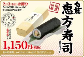 甲羅(愛知県豊橋市、鈴木勇一社長)は、カニを使った恵方巻3種と、エビフライを使った恵方巻1種を販売する。1月31日まで申し込みを受け付け、2月3日に店頭渡し。