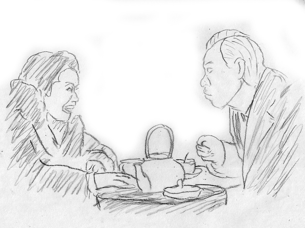 その不釣り合いなデートの過程で目立つのが、とよの食欲だ。とよは、喫茶店では渡邊のケーキにまで手を出し、遊園地ではお汁粉をおかわりし、映画を観ている最中も口を動かし、締めの料理屋ではすき焼きと、一日中何か食べている。それを見ている渡邊に、とよの食べる姿がまぶしく映っていることがわかる一連のシーンである。